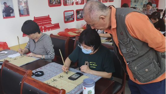 在自由練習(xí)時(shí)間,老師手把手教小組成員手握毛筆正確姿勢(shì),示范毛筆字基本筆畫,引導(dǎo)大家規(guī)范書寫,感受書法藝術(shù)的魅力,為大家上了一堂生動(dòng)的書法課。小組成員們興致盎然,聚精會(huì)神地書寫自己的作品,從中體會(huì)書法的美學(xué)特點(diǎn)以及行筆規(guī)范,盡情享受著書法帶來(lái)的樂(lè)趣。同時(shí)各位小組成員積極交流,互相探討學(xué)習(xí)書法的興趣及心得,大家紛紛表示,書法能靜心、修身、養(yǎng)性,能提高自己的修養(yǎng)、氣質(zhì)、內(nèi)涵,大家都會(huì)懷著端正的態(tài)度去學(xué)習(xí),勤學(xué)苦練,感悟書法的魅力。